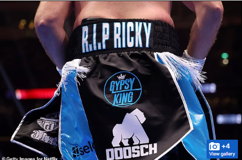 Fury made his entrance to the strains of Blue Moon in honour of his late, great friend, Hatton the Hitman. When he disrobed he revealed the tribute ‘RIP Ricky’ emblazoned on his shorts.Tyson Fury